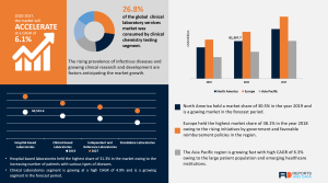 Clinical laboratories provide diagnostics and testing about various diseases as well as provide high-quality testing in fields of cytology, hematology, genetics, and others. Therefore, the clinical laboratory service helps to deliver effective testing results, which in turn help the physicians and other healthcare professionals in research and diagnostics. The clinical laboratory services market is widely driven by increasing infectious diseases in the world.